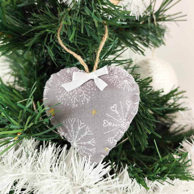Suspension pour sapin en forme de coeur, avec petit noeud. Cousu main.