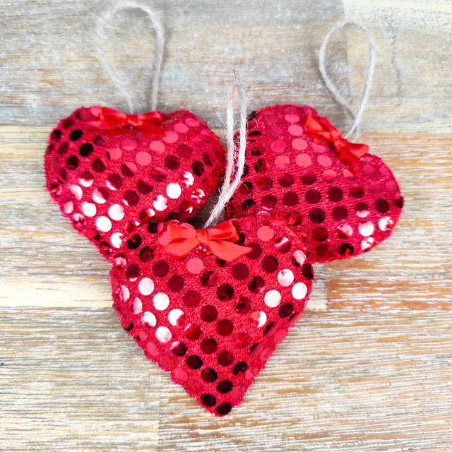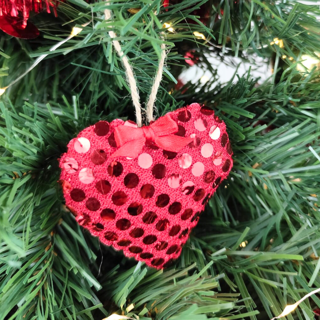 Suspension pour sapin en forme de cœur, avec petit nœud. Cousu main.